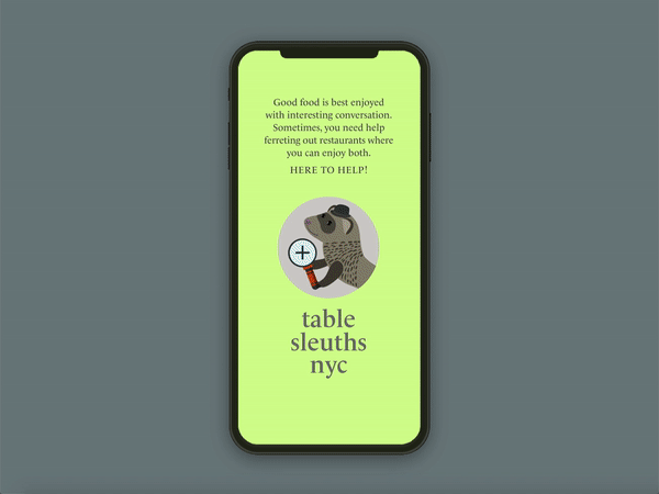 SOLUTION Table Sleuths NYC is a mobile app conceived to help users select a restaurant, bar, or coffee place through information regarding ambience—noise levels and lighting in particular—in addition to cuisine type and quality, price, and location. The app includes a map to quickly view noise level, lighting and other attributes of nearby establishments, and a set of advanced filters for a refined search for venues citywide. Users are encouraged to contribute reports from their own experience with an easy form and an in-app sound meter.